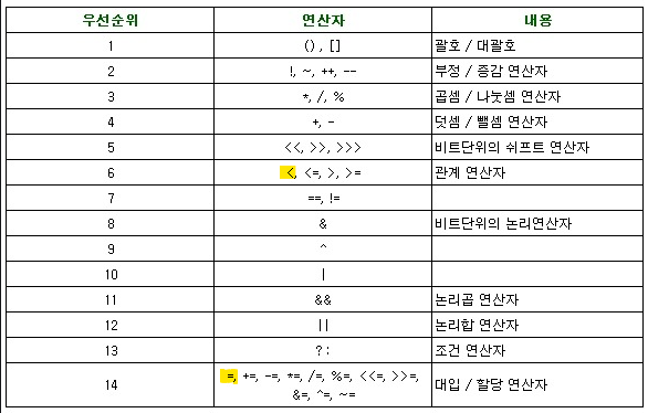 if 문안에 조건을 보면 = 와 < 를 사용한다. 그런데 연산자 우선순위를 보면 = 보다 < 가 우선이다.