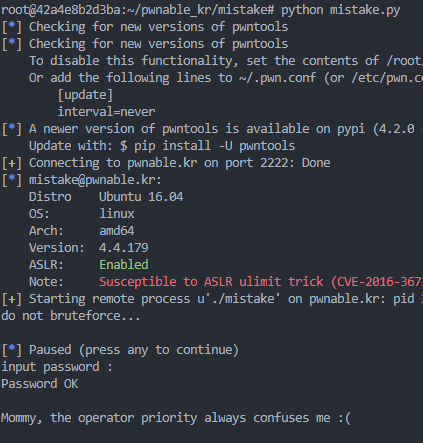 s = ssh(user='mistake', host='pwnable.kr', port=2222, password='guest')