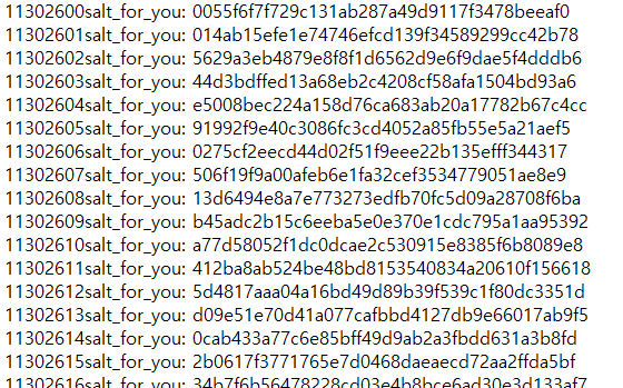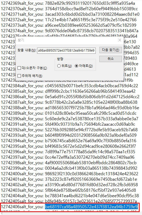 코드를 돌려 위 그림과 같이 테이블이 만들어진 것을 알 수 있다. 이제 이 테이블에서 문제에서 주어진 해시 값을 찾아내면 된다. (실제 위 코드를 돌려보면 데이터가 너무 많아 오래 걸린다. 필자는 계속 만들면서 페이지를 새 로고 치며 바뀐 해시값들을 계속 찾았다.)